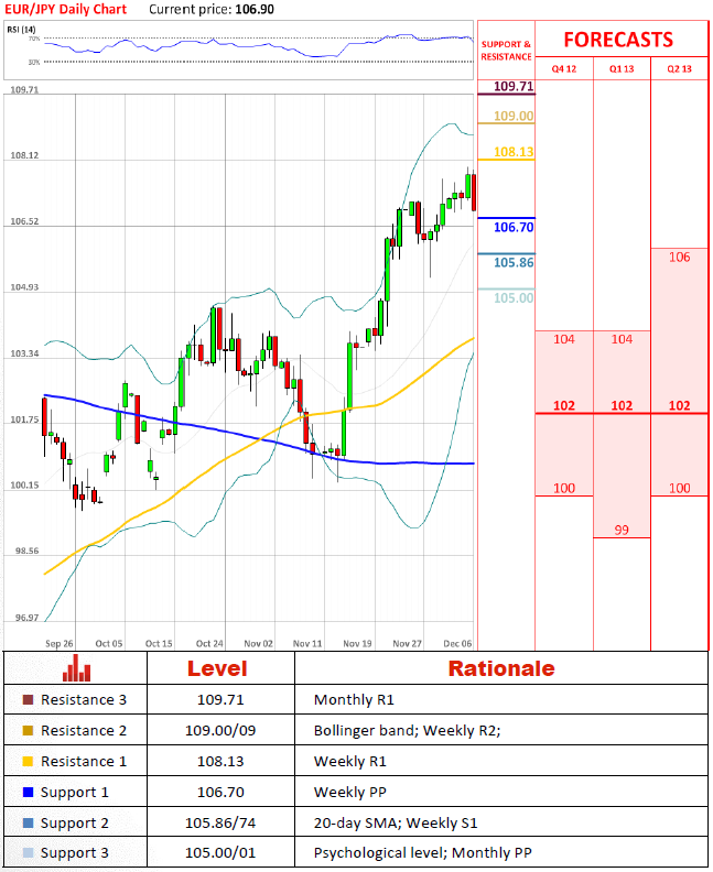 After opening pair tried to continue its rally and step up above 108 JPY, but crumbled after hitting 107.88 and at the moment is trading almost 100 pips below this mark. We can rather confidently say that is not the last attempt to reach new high, but for the time being we can just watch if 106.70 will be enough to at least slow down the pair or area around 106 JPY is going to ne next target.