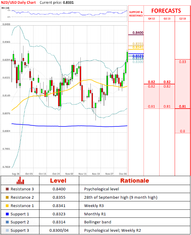 After having difficulties breaching 0.8247, pair gained momentum and breached quite a few major resistance levels. It does not seem that 0.8341 will be much of a trouble as well. The real question is about 0.8355 as after this major psychological level it is rather questionable if 0.84 will manage to slow down the pair. Technical indicators give positive outlook, however quite a few of them give neutral outlook suggesting that pair is likely to be driven by market sentiment.