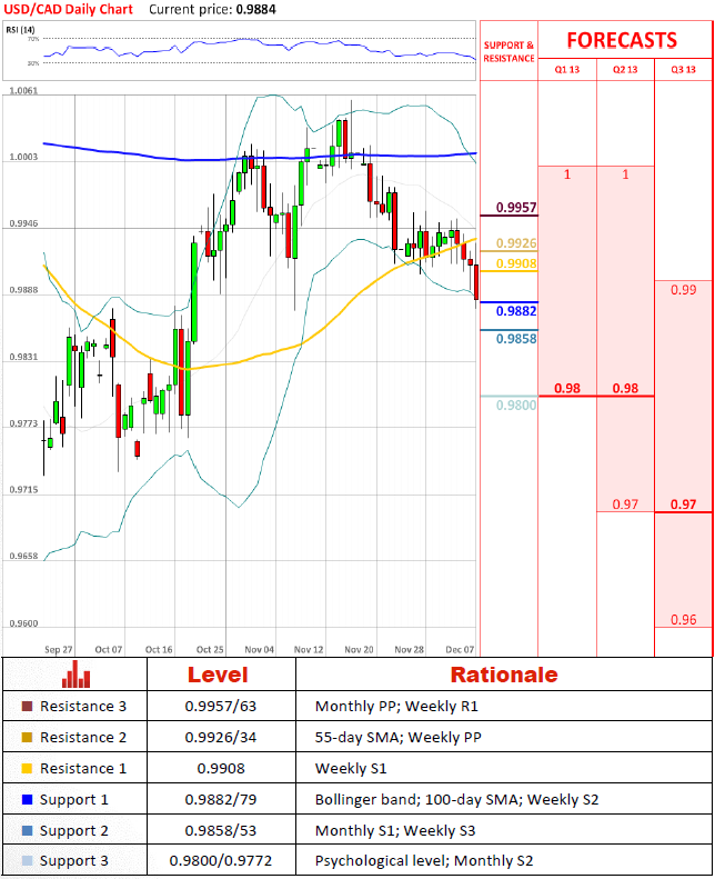 "We seem to be stuck in a range as Canadian dollar volatility has basically been sapped out. Employment numbers always cause a little bit of volatility, so look for those numbers to cause a bit of movement. Event risk is really centered around the fiscal cliff."