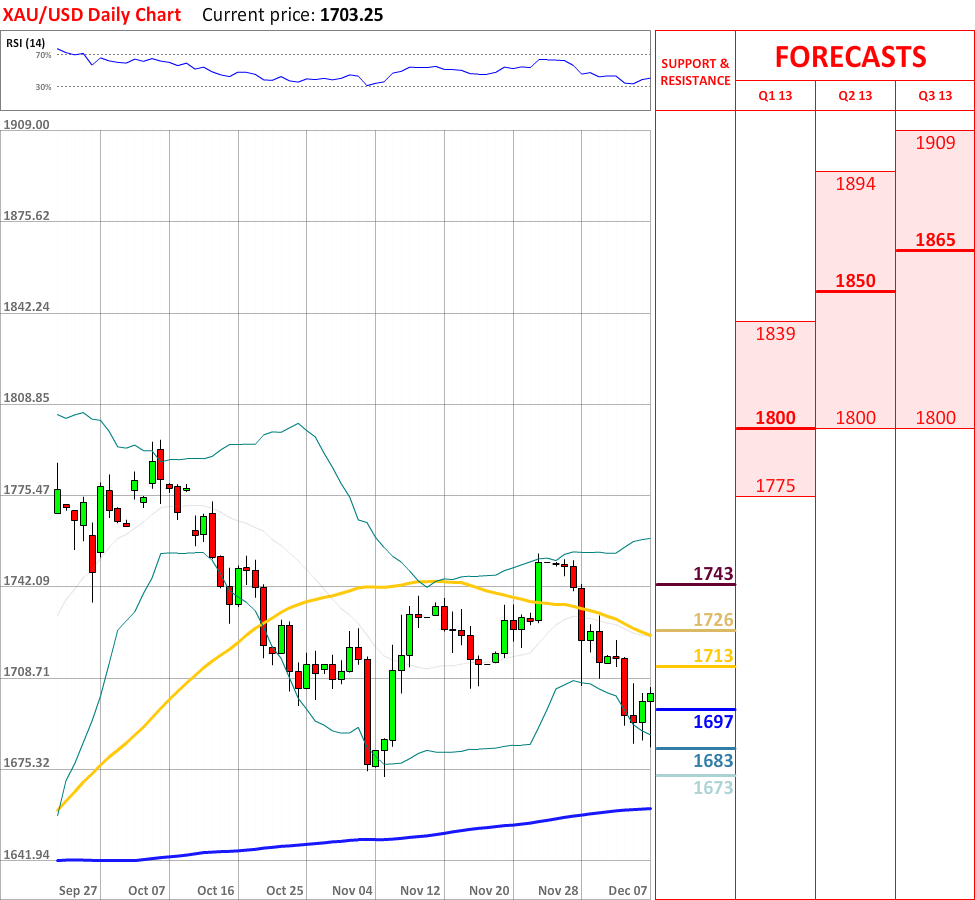 OutlookThe bullish correction, which occurred yesterday, has successfully managed to continue, as today the XAU/USD exchange rate experienced another bullish movement, and at the particular moment the price is gradually approaching the monthly PP at 1713, which might bring some bearish momentum, however, if it is breached, then the exchange rate is likely to reach the 55-day SMA at 1726, which in turn is expected to stop the current movement upwards. Additionally, the overall indicator outlook is negative, therefore supporting the potential tendency change in the upcoming days.