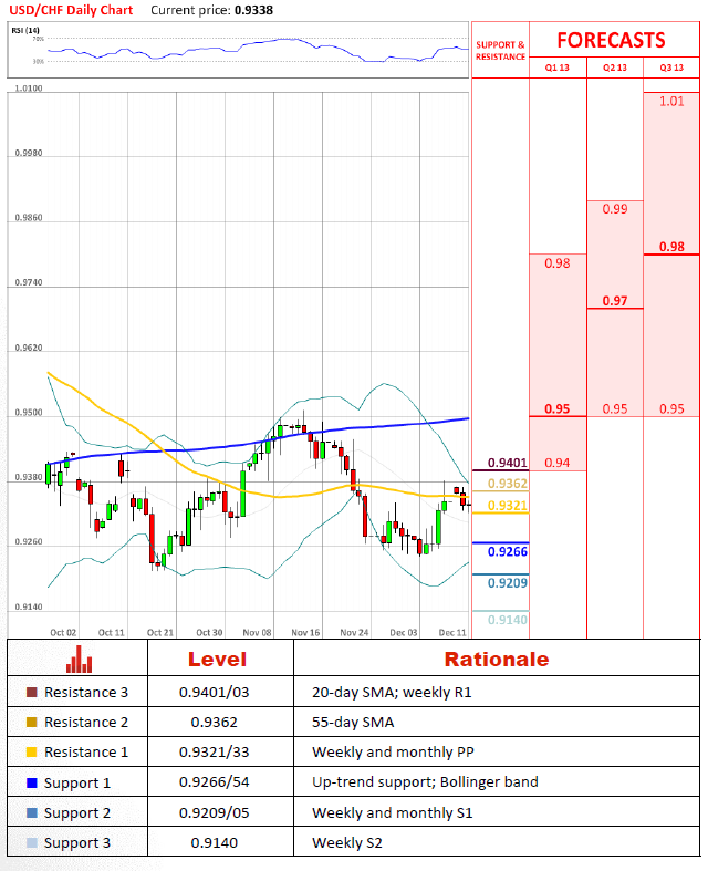 - National Australia Bank Ltd. (based on Bloomberg)Pair's OutlookUSD/CHF pair gradually slips lower to retest the strength of the 20-day SMA at 0.9314. As the price entered the bullish side of the Bollinger line, the pair was pushed to retest its bullish sentiments. If the price remains above the 20-day SMA it is very likely to see a further appreciation.