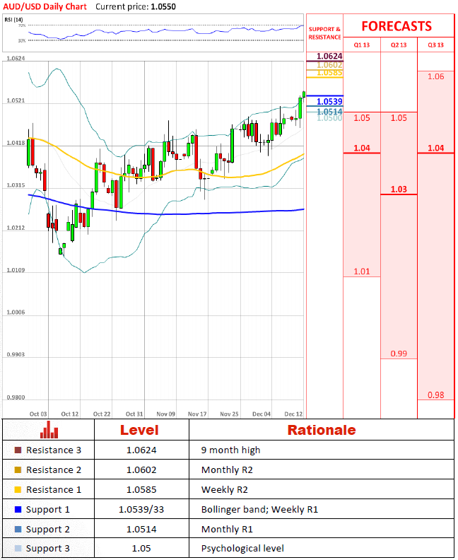 Pair has decisively breached the psychological level at 1.05. Further strength of the pair raises few questions in the short term as for quite some time it has been pushing the boundaries of Bollinger band and in the past it proved to be a major stoppage for the pair. However, technical indicators, even if on small margin, point at further strengthening of the aussie.