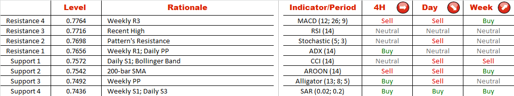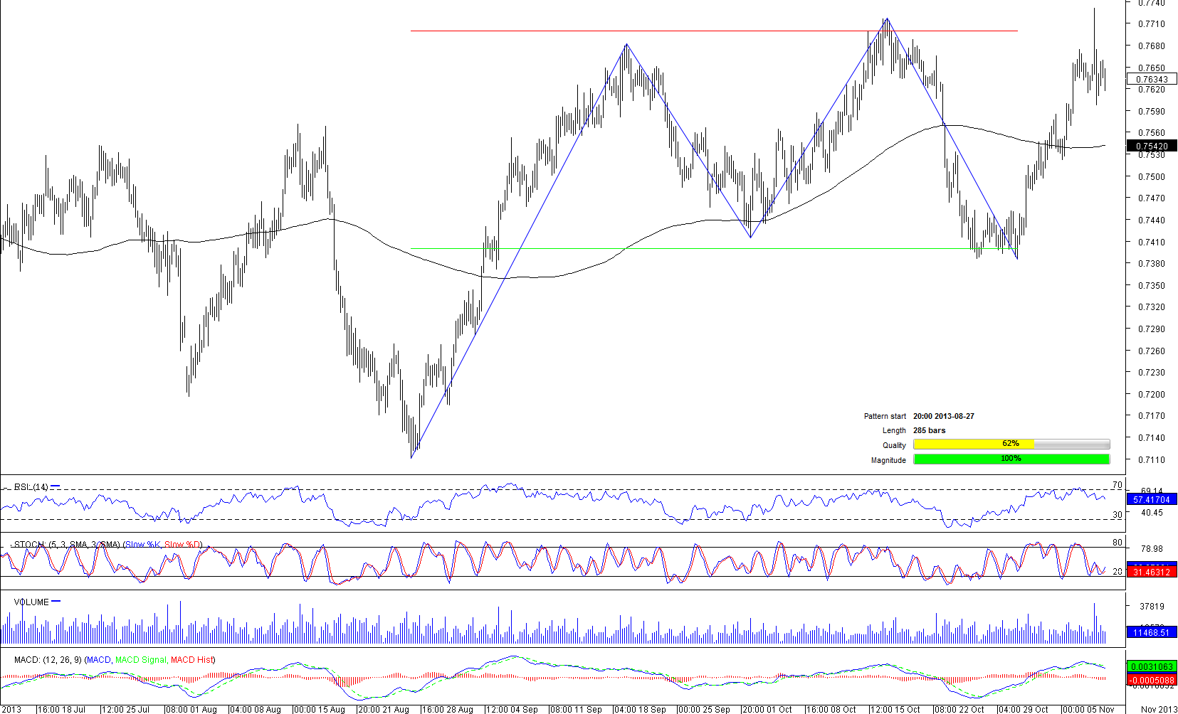 Following ECB's unexpected decision to trim interest rates, EUR/TRY fell almost 600 pips and moved back in pattern's boundaries. At the moment of writing the pair was retest pattern's support, and in case it is breached, the next stop would be a 200-bar SMA, which is located just couple of pips lower. Market sentiment is strongly bearish, as 72% of