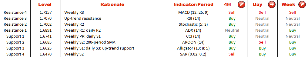 By connecting the peaks and valleys of the past 200 bars we may draw two rising trend-lines that are likely to prove significant in the future. While the lower line at 1.6625, together with the long-term moving average, is expected to limit the possible losses, the upper line, currently at 1.7070, is supposed to mark the potential points for bearish corrections for the overall up-trend.