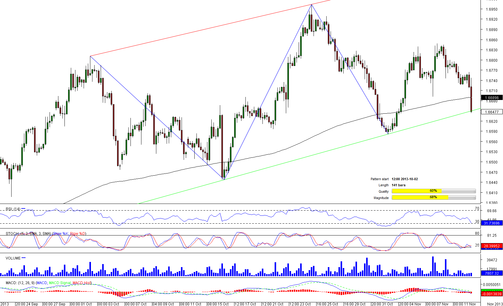 After weaker-than-expected inflation report from the U.K., the GBP/CAD plunged below the 200-period SMA and hit pattern's support at 1.6644. Taking into account the fact that the Pound is sold in 63% of all cases across the board, and that technical indicators on the 4H chart are sending "sell" signals, a penetration of the support line could be expected. Nevertheless, in a longer period the pair is likely to rebound, and continue appreciating, as aggregate indicators on a weekly chart are pointing to the opposite direction. The short-term outlook is bearish, hence, the next stop for the short traders could be a key level of 1.6581, represented by a recent low.
