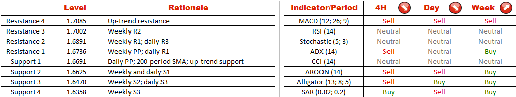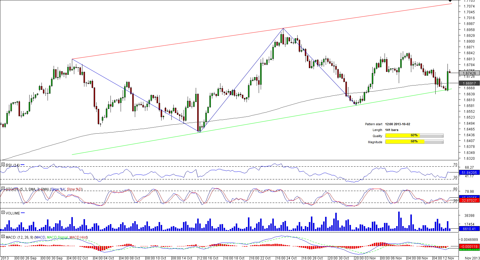 We took a look at this particular bullish pattern yesterday, when the currency pair was testing the rising support line at 1.6691. As it turned out, the lower boundary of the corridor, together with the 200-period SMA and the weekly S1, held the price and provided enough support to initiate a rally, which is now supposed to target 1.7085—the upper positively-sloped trend-line.