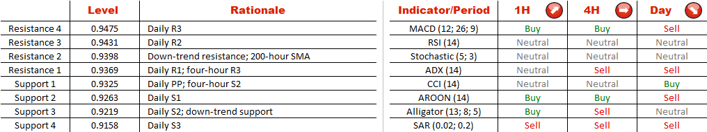This 350-bar long pattern was initiated after AUD/USD reached a peak of 0.9760 on Oct 23. Since then the currency pair has plunged more than four figures and appears to be capable of moving even lower. Before resuming the down-trend, however, there is a good chance that the Aussie will first test a down-trend resistance at 0.9398, but should fail to advance beyond it, especially considering that the line currently coincides with the 200-hour SMA. Nevertheless, an overwhelming majority of SWFX market participants do not believe the decline will persist for a prolonged period of time—70% of them at the moment are long on AUD/USD.