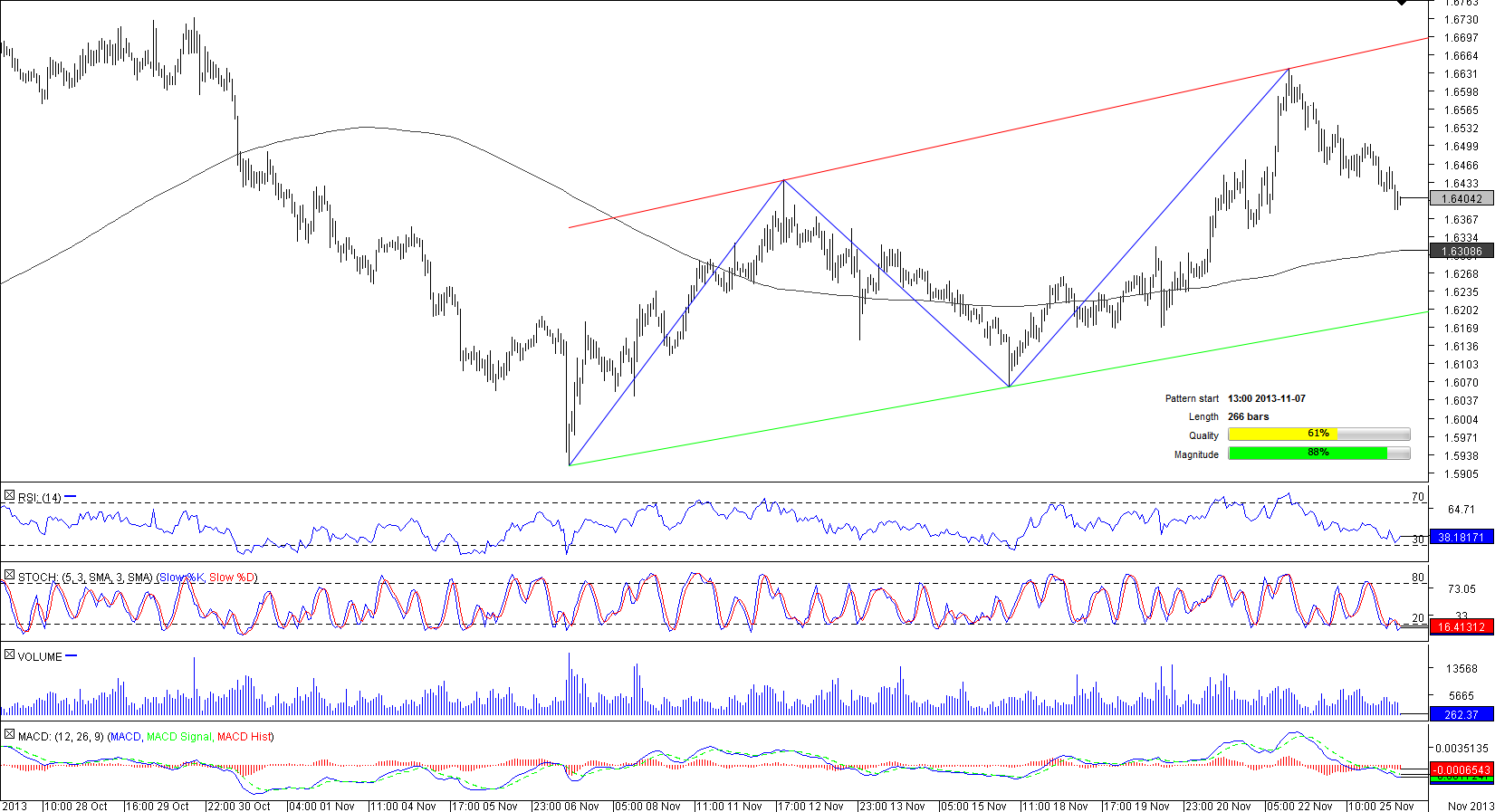 EUR/NZD has been trading in a 490-pips wide corridor for almost three weeks; the corridor represents a 266-bar long channel up pattern that started on November 7.