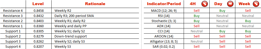 Being that since August EUR/GBP has been posting lower peaks and lower troughs, we may conclude that the currency pair has been trading in the down-trend. The lower boundary of the emerging bearish channel has been repeatedly confirmed by the market as significant during this time interval. Accordingly, there is a good chance that the price, despite being under considerable downward pressure at the moment, will manage to rebound from the support area between 0.8305 and 0.8262. Nevertheless, the market participants seem to be undecided with respect to the future of EUR/GBP—47% of them are currently long and 53% are short on it.