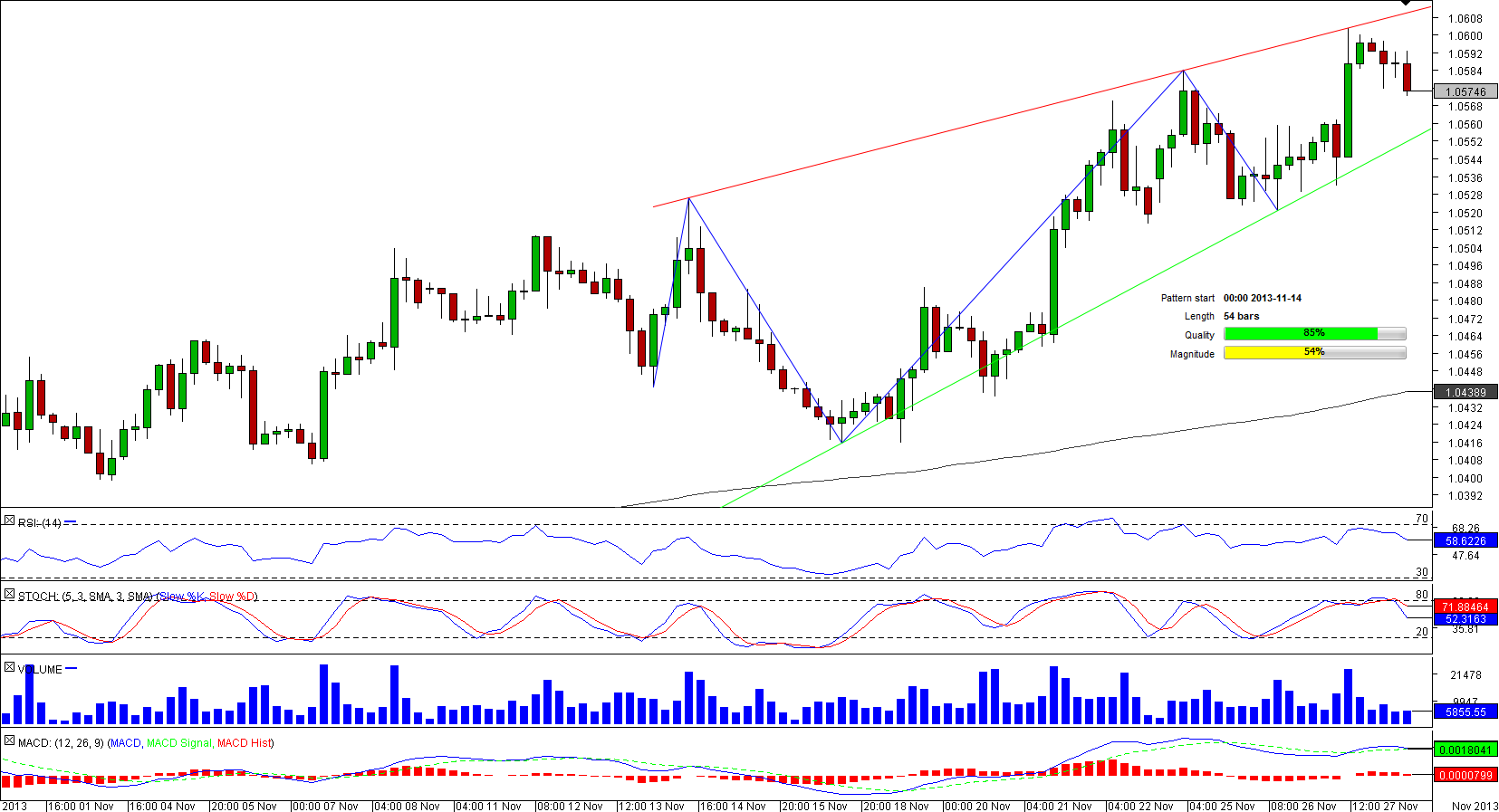 Starting from mid-November the trading range of USD/CAD has been narrowing, thereby resulting in a formation of the rising wedge pattern on the four-hour chart.