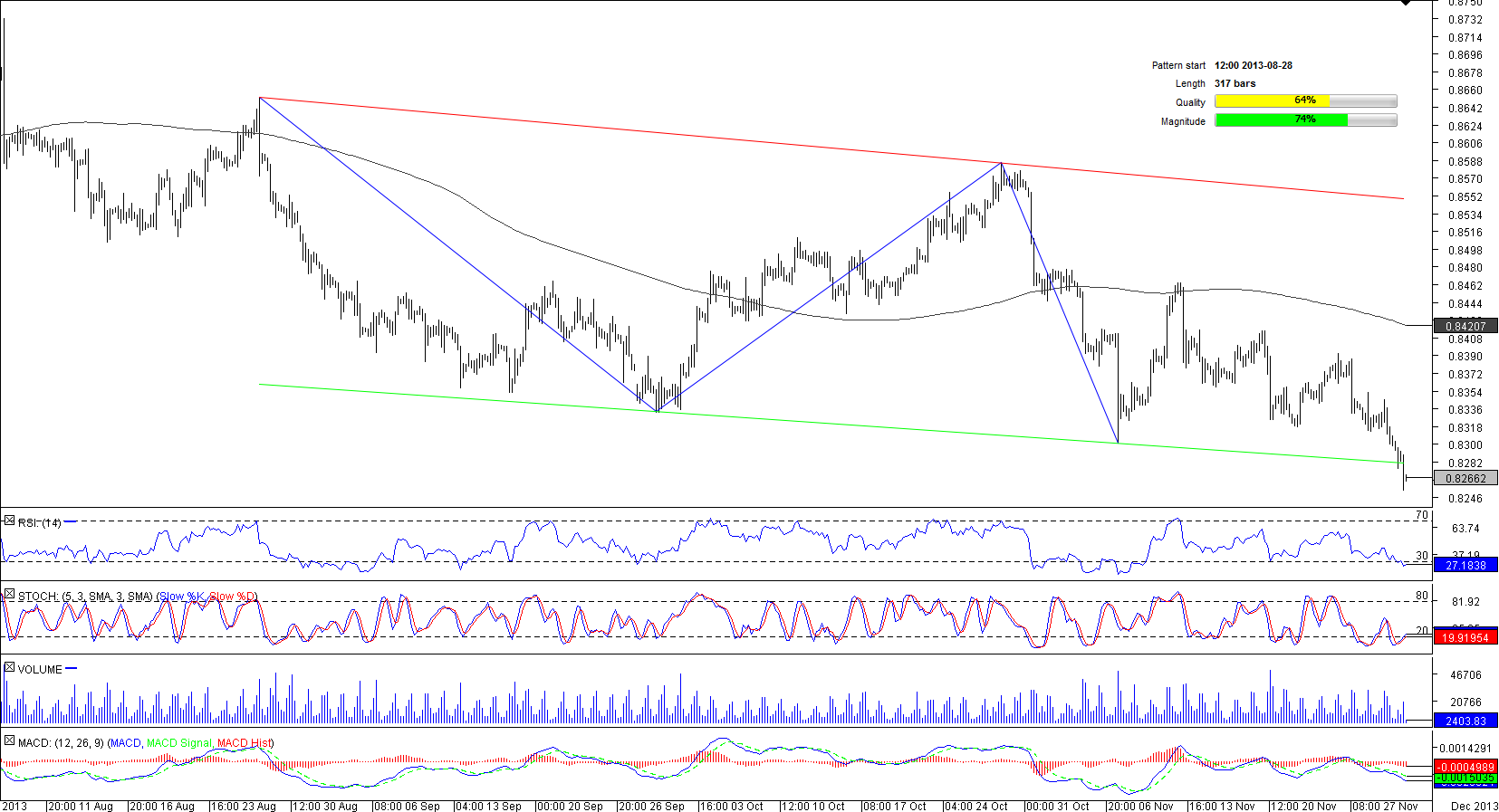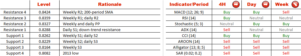 Although the currency pair has been fluctuating within the boundaries of the bearish channel for nearly 400 bars, specifically respecting the lower edge, right now EUR/GBP is eroding this line. Potentially this may result in an accelerated sell-off down to the 2013 low at 0.8082, if the supports at 0.8262 (weekly S1) and at 0.8154 (weekly S3) fail to underpin the price.