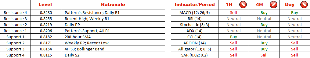 Due to the recent strength of the greenback, NZD/USD breached a crucial level at 0.8194 on December 4. During the day the pair already tried to inch back into pattern's boundaries, however, after touching the support line once again, the pair lost almost 30 pips and hit 200-hour SMA once again. Meanwhile, 65% of opened positions are short, and the fact Kiwi is sold in 69.80% of cases across the broad is suggesting investors are strongly bearish on the New Zealand Dollar. In this case short traders could focus on a weekly pivot at 0.8171 and in case it will be breached next level at which sellers can experience some difficulties could be found at 0.8154.