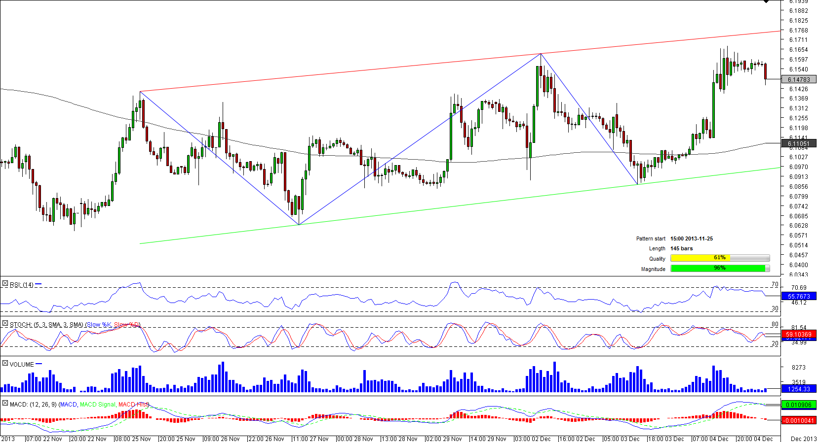 Since November 25, the U.S. Dollar has been enjoying a solid support coming from upbeat data releases from the domestic economy. Strong fundamentals allowed the U.S. Dollar to appreciate against the Norwegian Krone and to form a channel up pattern that now is 145-bar long and is likely to be prolonged given a moderately bullish sentiment in the market; 55.56% of traders expect USD/NOK to advance further. Meanwhile, technical indicators solidify the trades' view, sending bullish signs for short and long terms.