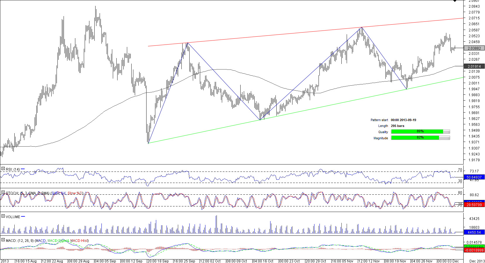 After a deep bearish correction the currency pair experienced in the first half of September USD/TRY managed to revive the up-trend near 1.9364. However, since Sep 19 the trading range has been narrowing, meaning there is a rising wedge pattern being formed on the four-hour chart, which in turn implies an increasing possibility of a strong sell-off, once the lower boundary of the channel, currently at 2.0013, is breached.