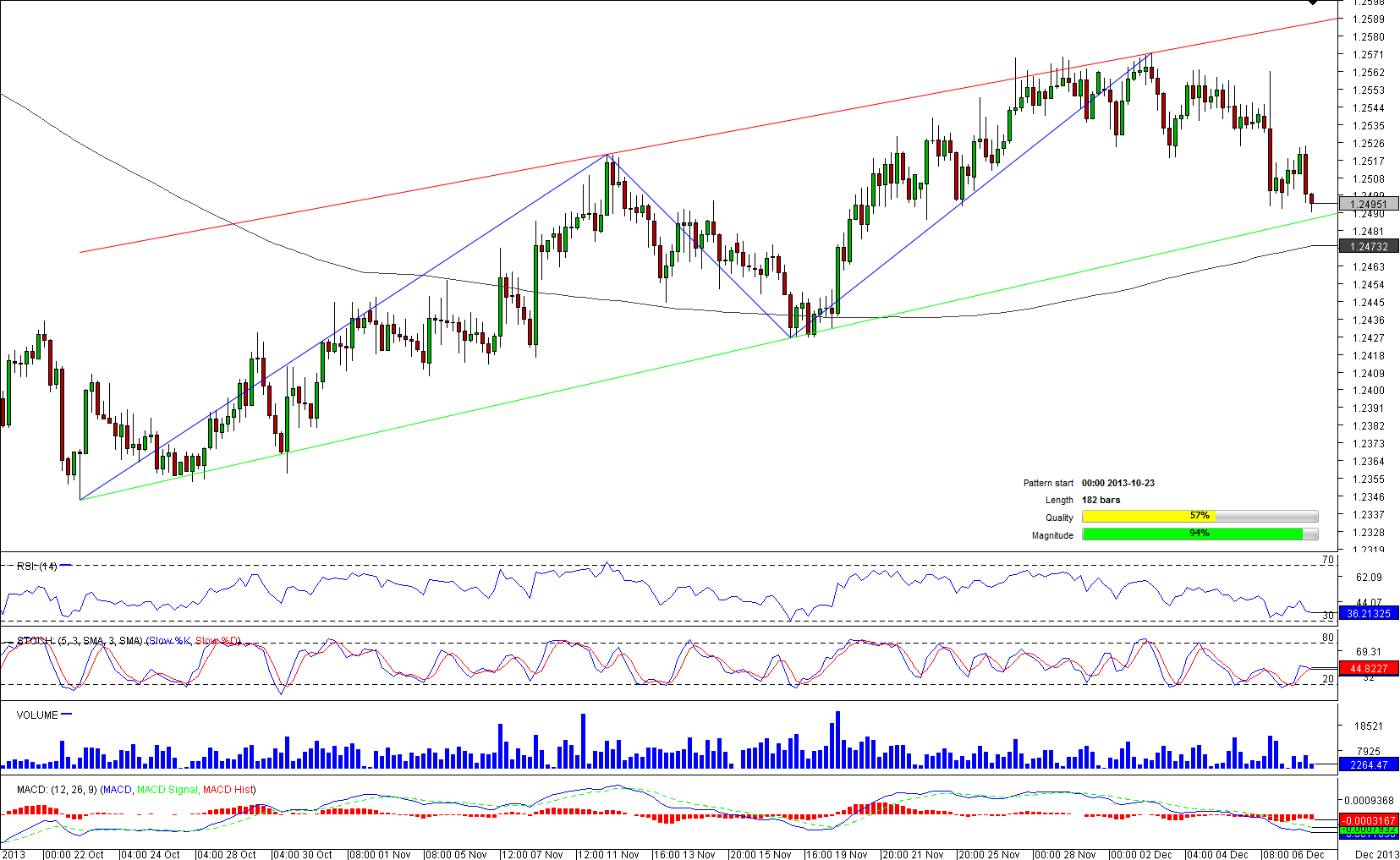 USD/SGD has formed a channel up pattern on October 23, and since then the pair has touched both trend lines more than 4 times, making both the upper and lower trend lines worth paying attention to. After fluctuating around pattern's support for 23 bars, the pair moved to the south and at the moment of writing was trading just 7 pips above the support line. Regarding the future outlook, in a short-term it is bearish, as 71% of traders are holding short positions. Nevertheless, a strong downside movement is unlikely, as just pips below the support line is located the 200-period SMA, which is expected to limit pair's depreciation. Meanwhile, indicators on a weekly chart are sending "sell" signals.