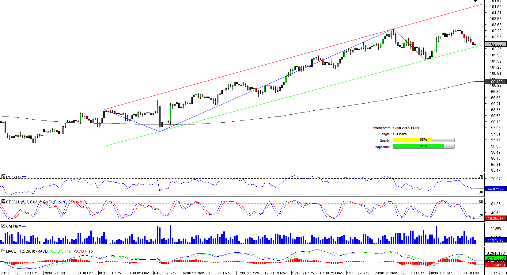 After bottoming out around 1.6750 GBP/AUD commenced an up-trend that later on turned into a bullish channel, the boundaries of which the currency pair has been recently trying to escape from (during Nov 27 and 28 there was an attempt of a break-out to the upside). Still, there is a good chance that the price will not settle far beneath
