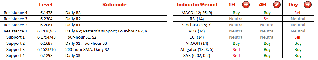 The lower boundary of the 146-bar long ascending triangle pattern formed by USD/NOK was breached five bars ago. The breakout is likely to be real considering that even 50-hour SMA that is meandering below the lower trend line failed to mollify the downside pressure and allowed the pair to dive beneath it. However, market participants are in favour of the bullish outlook as 56.25% of all orders are placed to buy the pair. Meanwhile, technical indicators support traders' view in the medium term but are neutral for short and long terms.