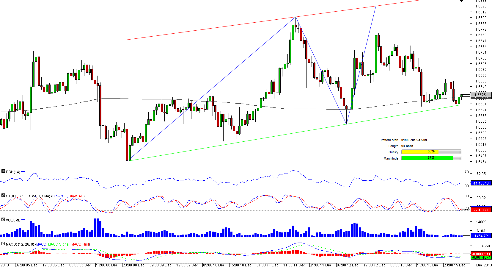 A recent weakness in the common currency entailed a stab to the lower limit of the pattern after that selling pressure abated and helped the pair to change direction to the north. Currently, the currency couple is expected to continue appreciating as 66.67% of traders are bullish on the pair.