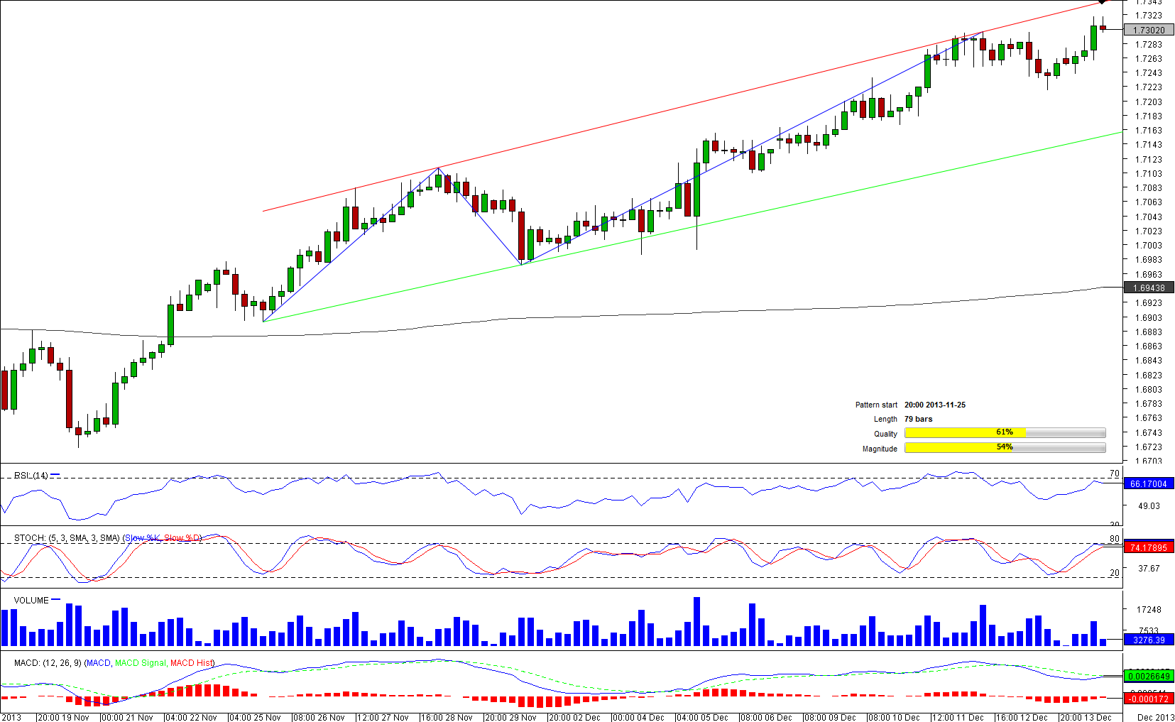 The single currency has been appreciating versus the Turkish Lire since late November, and has formed a rising wedge pattern, which, however, is moving to its apex. While both trend lines are still far away from converging, bears were able to penetrate the support line, and at the moment of writing were testing the 200-hour SMA. In case they will