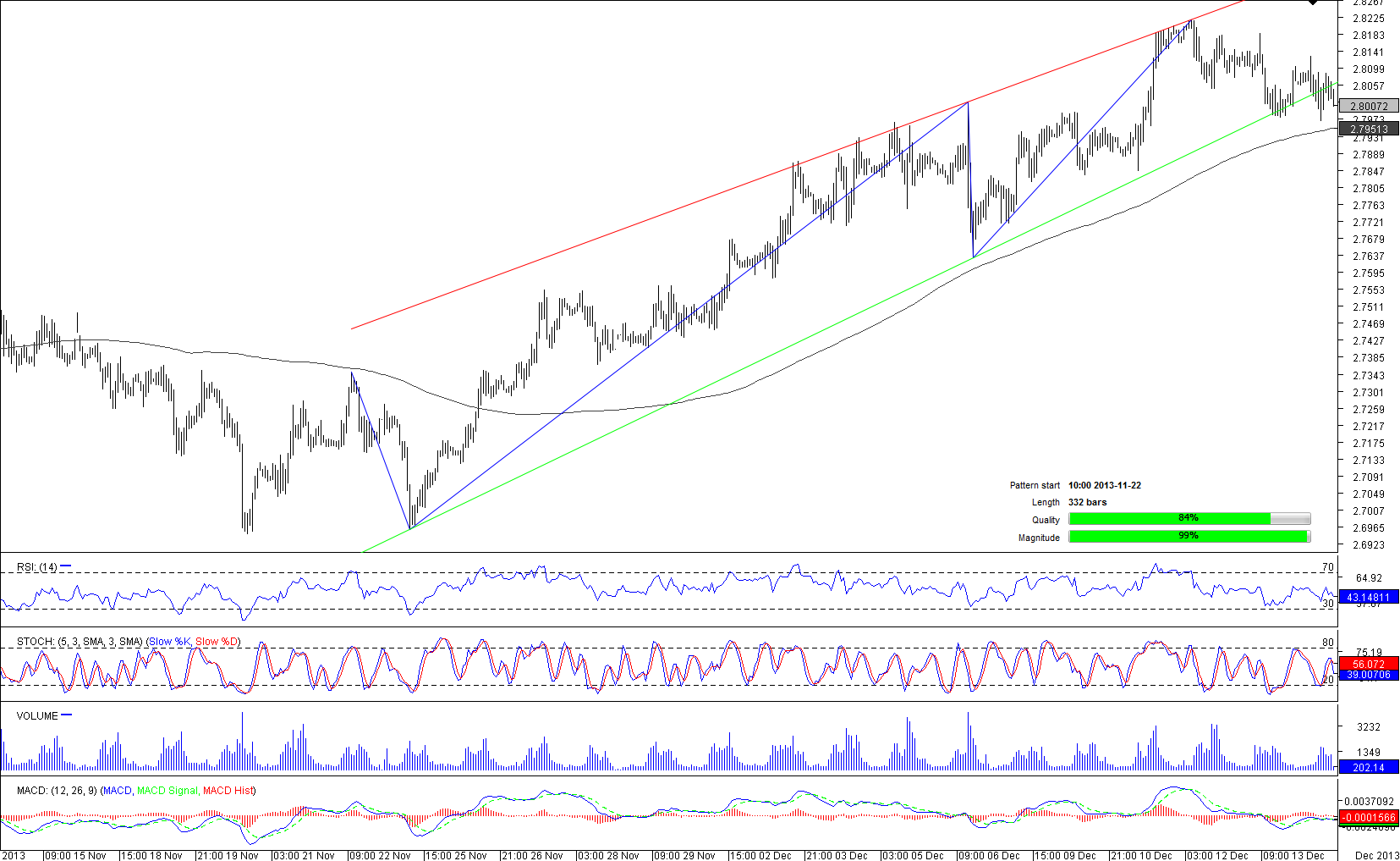 The single currency has been appreciating versus the Turkish Lire since late November, and has formed a rising wedge pattern, which, however, is moving to its apex. While both trend lines are still far away from converging, bears were able to penetrate the support line, and at the moment of writing were testing the 200-hour SMA. In case they will be able to close below 2.795, it will be a strong "sell" signal for the pair. Aggregate technical indicators are either neutral or suggesting the pair will decline further. Moreover, vast majority (72.49%) of positions are short, while 57% of all pending orders are placed to sell the pair, meaning, in case of depreciation, bears will receive additional support.