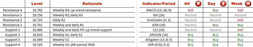 A 58-bar long triangle pattern was formed by USD/ZAR on December 2. Despite the fact pattern's lower boundary is not horizontal, the triangle can be named as a descending triangle as well, as the level of 10.281 represent strong support. While the pair is still trading in pattern's boundaries, the pair is likely to be highly volatile soon, as