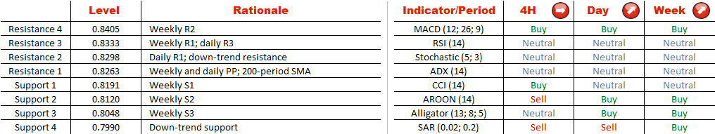 After a failure to prolong the rally that was developed in September and October beyond 0.8544, NZD/USD came under heavy selling pressure that continues to constantly push the price lower. As a result, there is a channel down pattern emerging on the chart that indicates a heightened possibility of a long-term depreciation of the New Zealand Dollar. In the meantime, taking into account the current position of the price (just below the formidable supply zone implied by the 200-period SMA, weekly PP and the down-trend line) the near-term outlook is also bearish, even though some of the daily and weekly technical studies are pointing upwards.