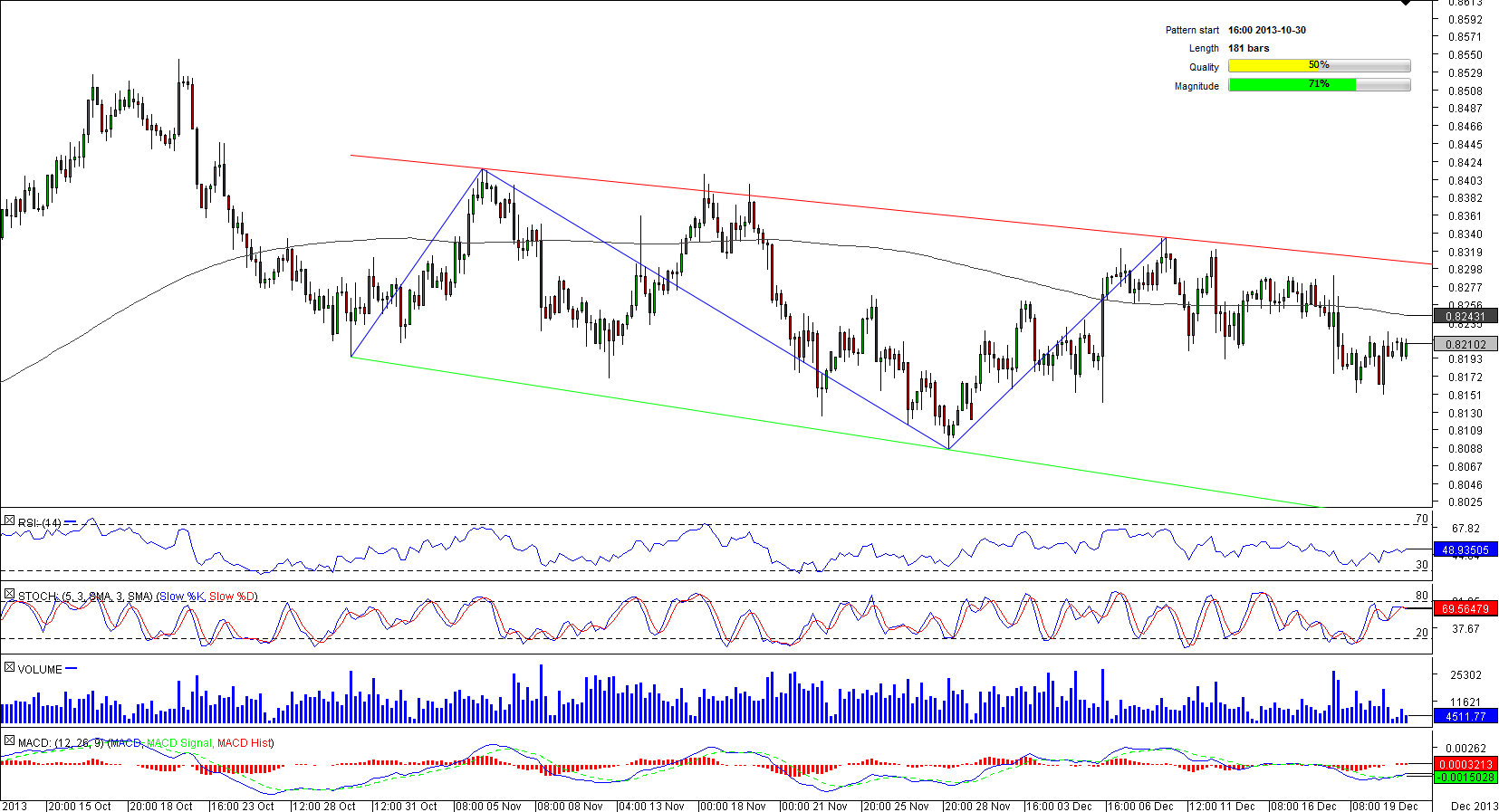 After hitting a several-year high in mid-October, the New Zealand Dollar started to retreat versus its U.S. counterpart; however, the pair embarked on formation of the channel down pattern only in the very end of October. Now the pair is trading below its 50- and 200-bar SMAs that recently have created a ‘death' cross thus putting additional selling pressure of the currency couple. Market players are divided on the future prospects of the pair, with the proportion of long to short positions being 1:1.