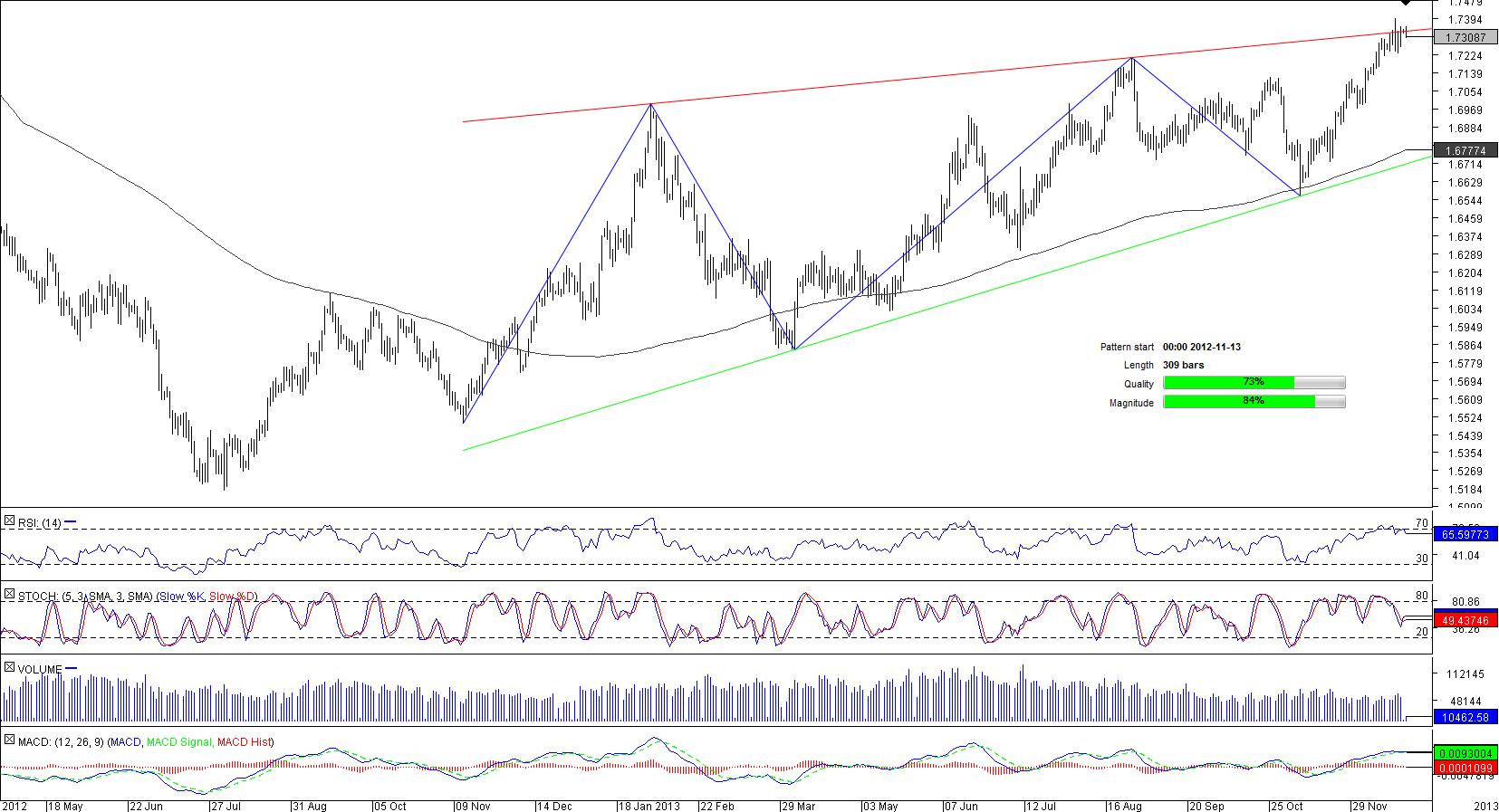 A year ago the currency pair breached the 200-day SMA to the upside and commenced a recovery that still remains intact. However, during this time the pace of Euro's appreciation has notably slowed down, leading to formation of a rising wedge, a pattern that implies an increased possibility of a reversal.