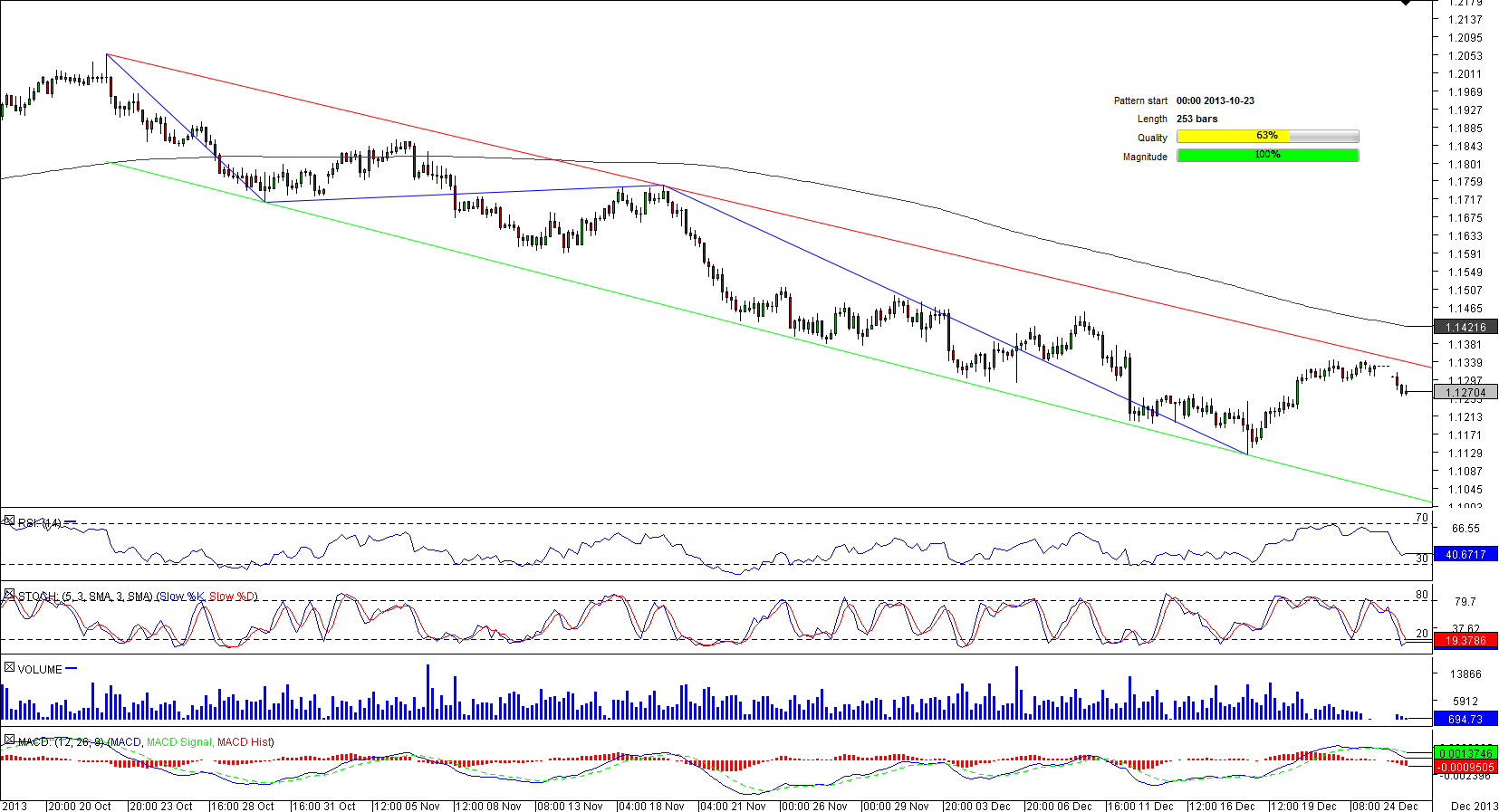 The beginning of the channel down pattern formed by AUD/SGD (and by some of the other AUD's crosses) dates back to Oct 23, when the currency pair topped out at 1.2055. Since then the price has covered the distance of more than nine figures. Just recently the pair has completed a bullish correction within the major down-trend and it is therefore well-positioned to decline further south, towards the lower boundary of the corridor at 1.0983. On its way there the Aussie will have to breach several support lines, but they are unlikely to pose a substantial threat to the bearish momentum. However, 73% of SWFX market participants are currently holding long positions and are expecting a reversal.