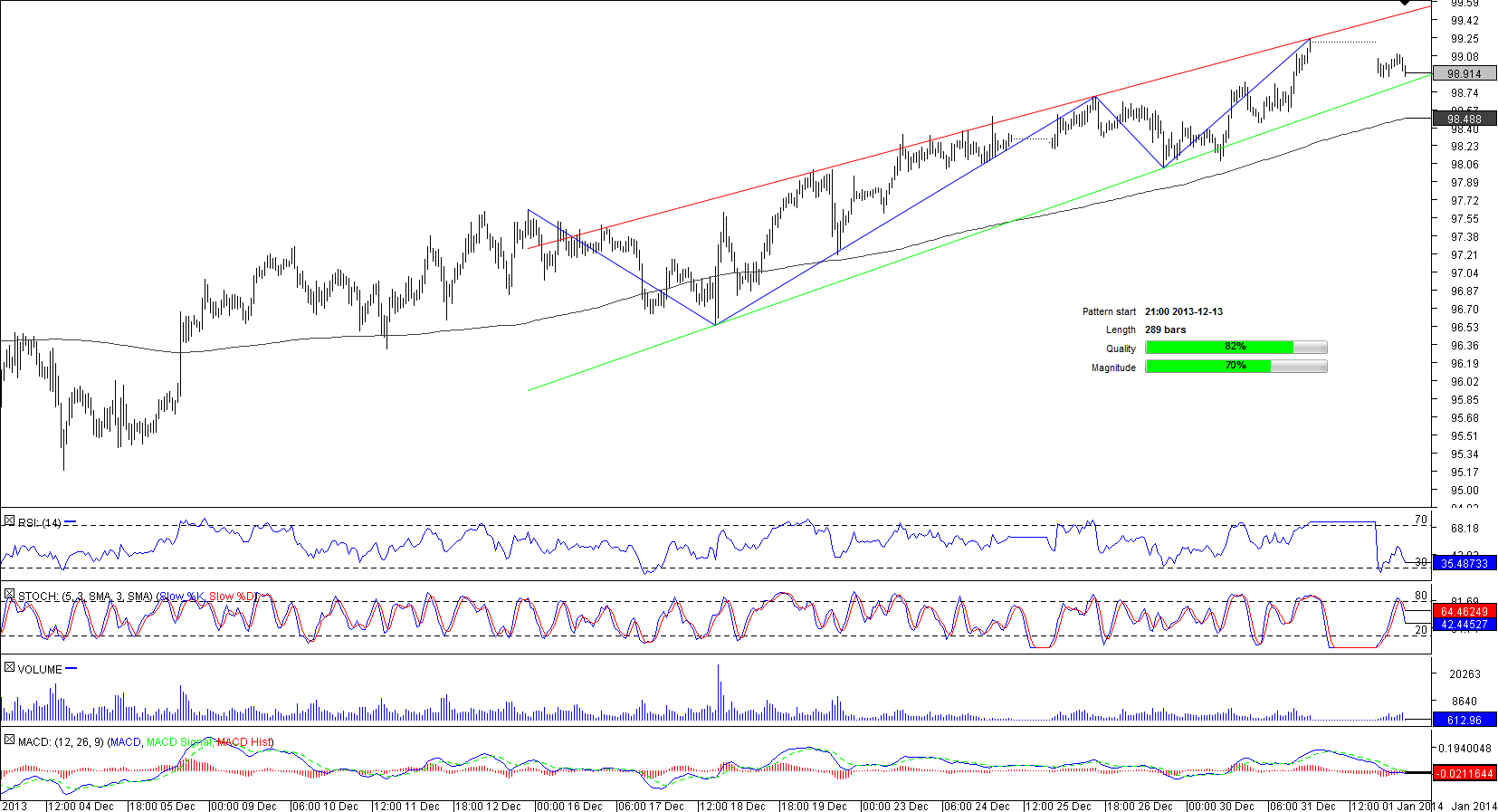 Being that GBP/JPY has managed to maintain a generally bullish course since November, there is a 250-bar long channel up currently developing on the four-hour chart. Lately the currency pair has been moving north from the lower trend-line towards the upper edge of the pattern. As a result, within the boundaries of the bullish channel there is a smaller rising