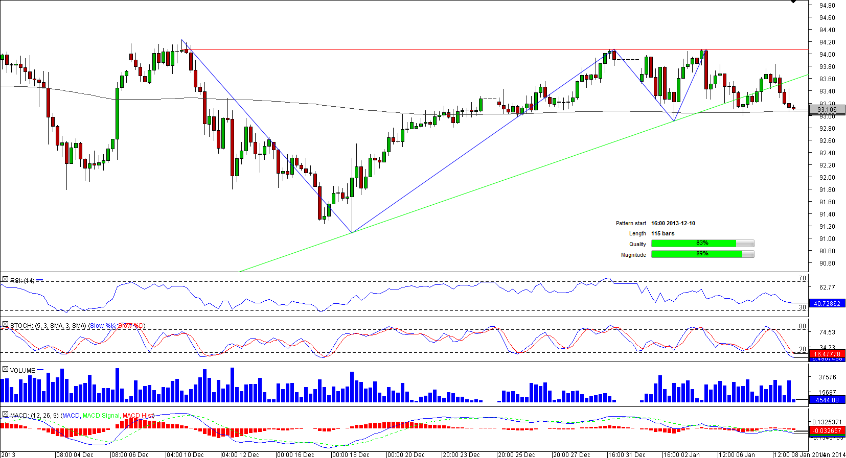 After trading sideways for three-months ended in mid-December, AUD/JPY performed several more distinct moves that were enough to shape the ascending triangle pattern with quality and magnitude well above average.