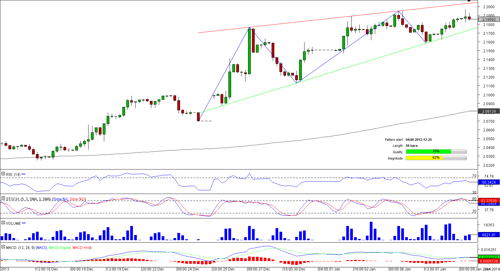 Starting from mid-December the U.S. Dollar has been outperforming the Turkish Lira and at the same time respecting the up-trend line that currently creates support in the region around 2.1786.