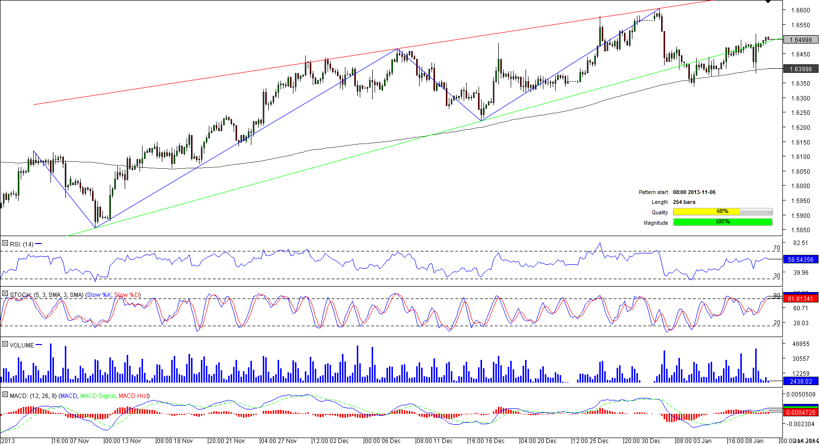 Having reached a five-year high of 1.6607, the national currency of the UK plunged against its U.S. peer and even broke through the lower limit of the rising wedge pattern that restricted the pair's moves during more than two months. However, it may be too early to talk about the breakout since the currency couple managed to use its 200-bar SMA as a prop to appreciate and return to the pattern's area. Meanwhile, technical indicators are sending bullish signals for medium and long terms.
