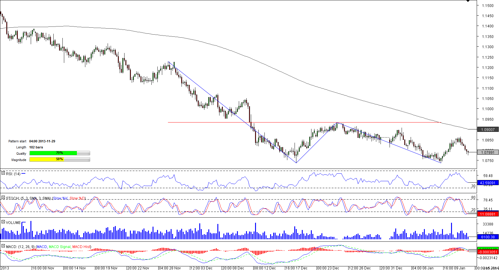 The distinct downside trend was started by AUD/NZD in late October and helped the pair to form a double bottom pattern in last days of November. Whilst following the pattern trend-lines, the pair touched the lowest level since at least 2009 for two times but each time it managed to recover, albeit slightly.
