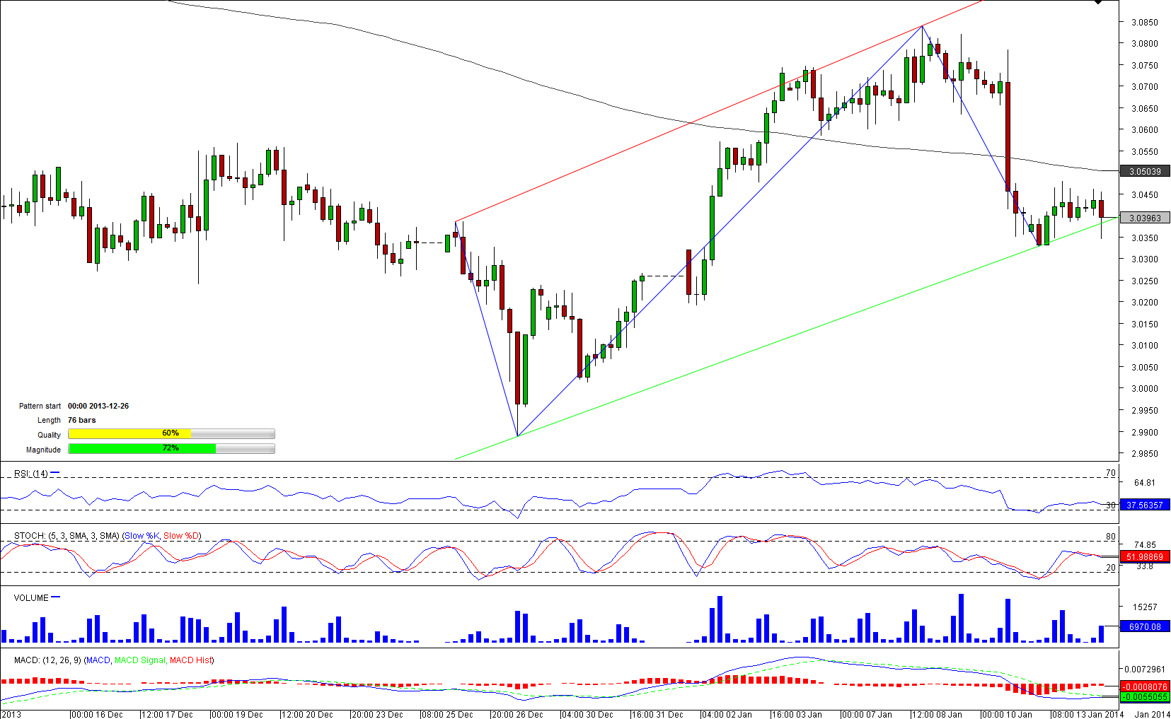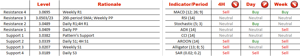 USD/PLN has formed a channel up pattern on a hourly and 4H charts. At the moment of writing the pair was testing a strong support at 3.0382 and in case bears will be able to push the price lower, it will be a beginning of a strong downward movement. Traders, however, expected the pair to bounce back, as almost 74% of them are holding long positions. Separately, the greenback is bought in 55% of all cases, while Polish Zloty is sold in 62% of the time. Aggregate technical indicators, however, are sending "sell" signals, while, at the same time, MACD has entered a zone which indicates market is oversold on a daily and weekly charts. Therefore, the medium and long-term outlooks are bullish.