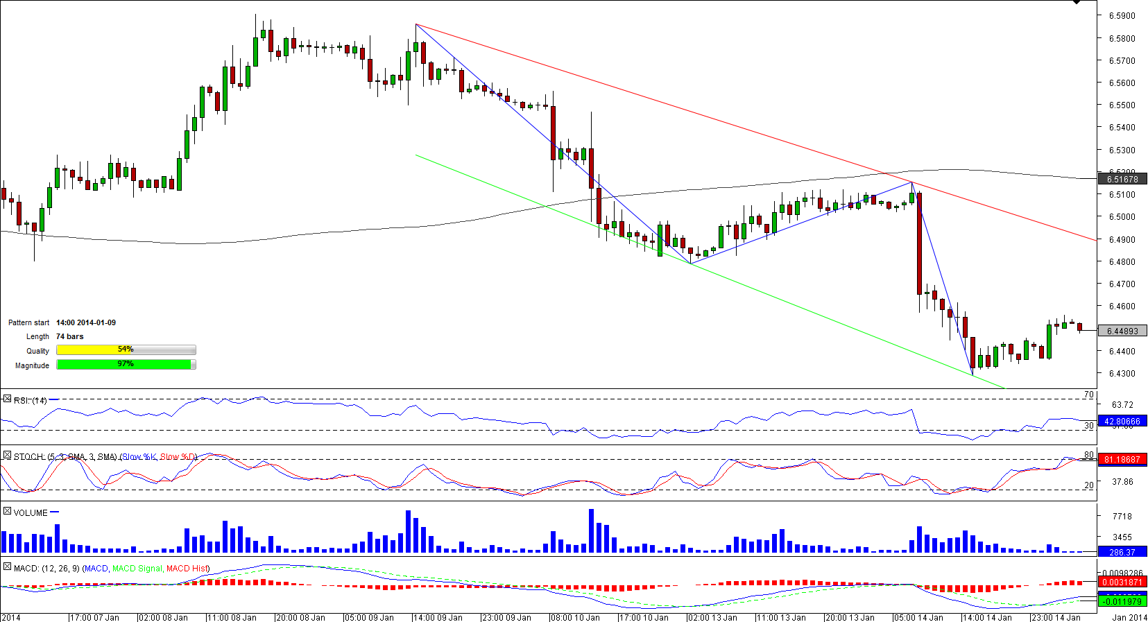 Currently, the pair is rebounding after it slumped to a two-week low of 6.4289 but may halt its advance that is confirmed by technical indicators that are pointing to a weakness of the pair in the long-term.