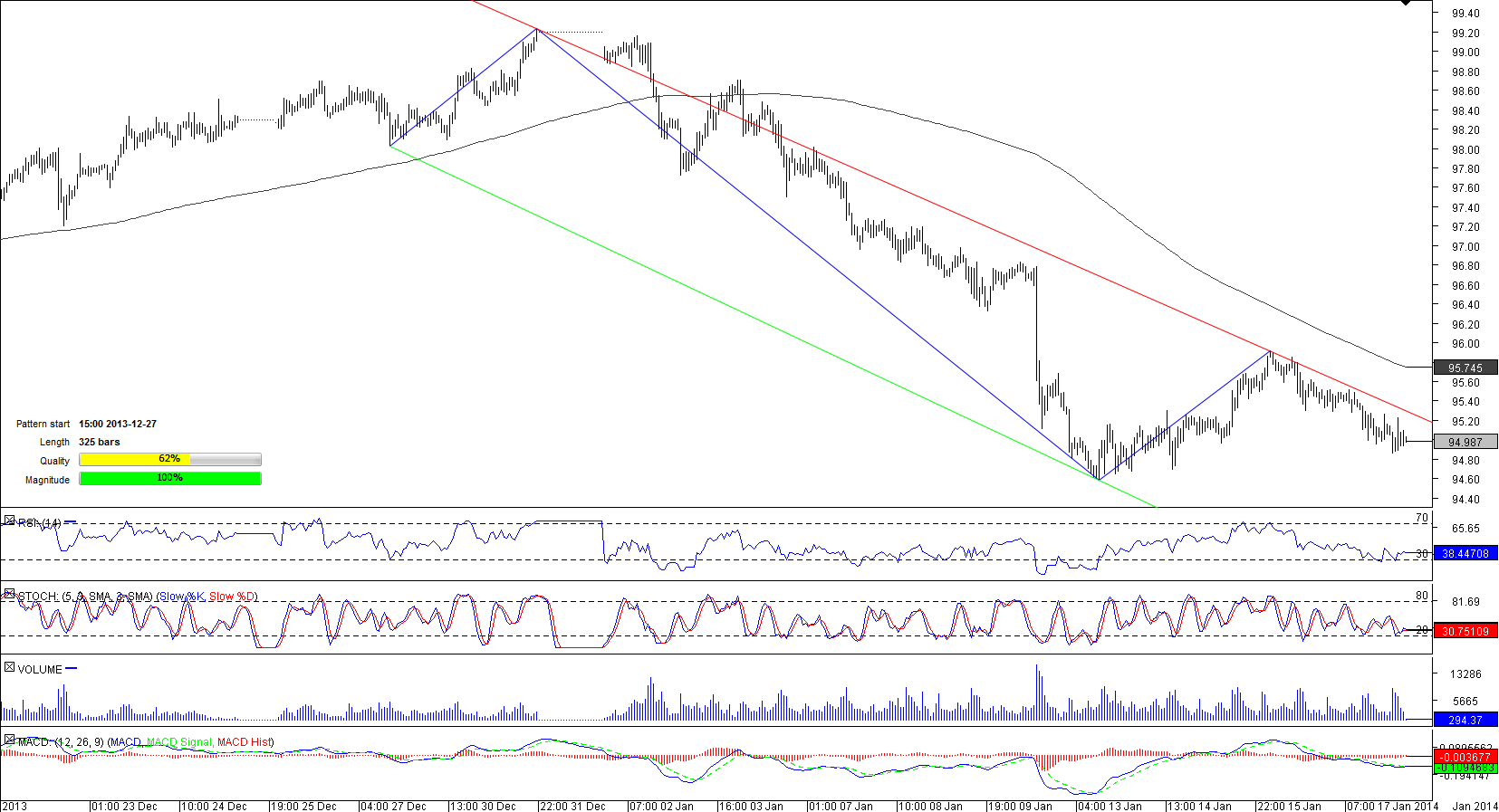 A rise to a nine-month high of 99.23 in the last day of 2013 provoked a sharp retreat of the Canadian Dollar versus the Japanese Yen; the plunge has been developing within the limits of the channel down pattern that trapped the pair 325-hour ago.