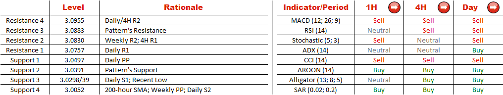 The single currency has been steadily appreciating against the Turkish Lira since the middle of January, and it seems that rally begins to wane. The latest high is just couple of pips higher than the previous one, while technical indicators on several timeframes suggest a sideways movement. At the same time, 74% of traders are holding short positions, while CCY index shows the Euro is being sold in 55% of all cases across the board, while TRY is bought more often than sold (69% bullish). Taking it into account, the outlook for the pair is bearish, and in case bears penetrates the lower boundary at 3.0391, the next key level that can limit pair's depreciation can be found at 3.0052.
