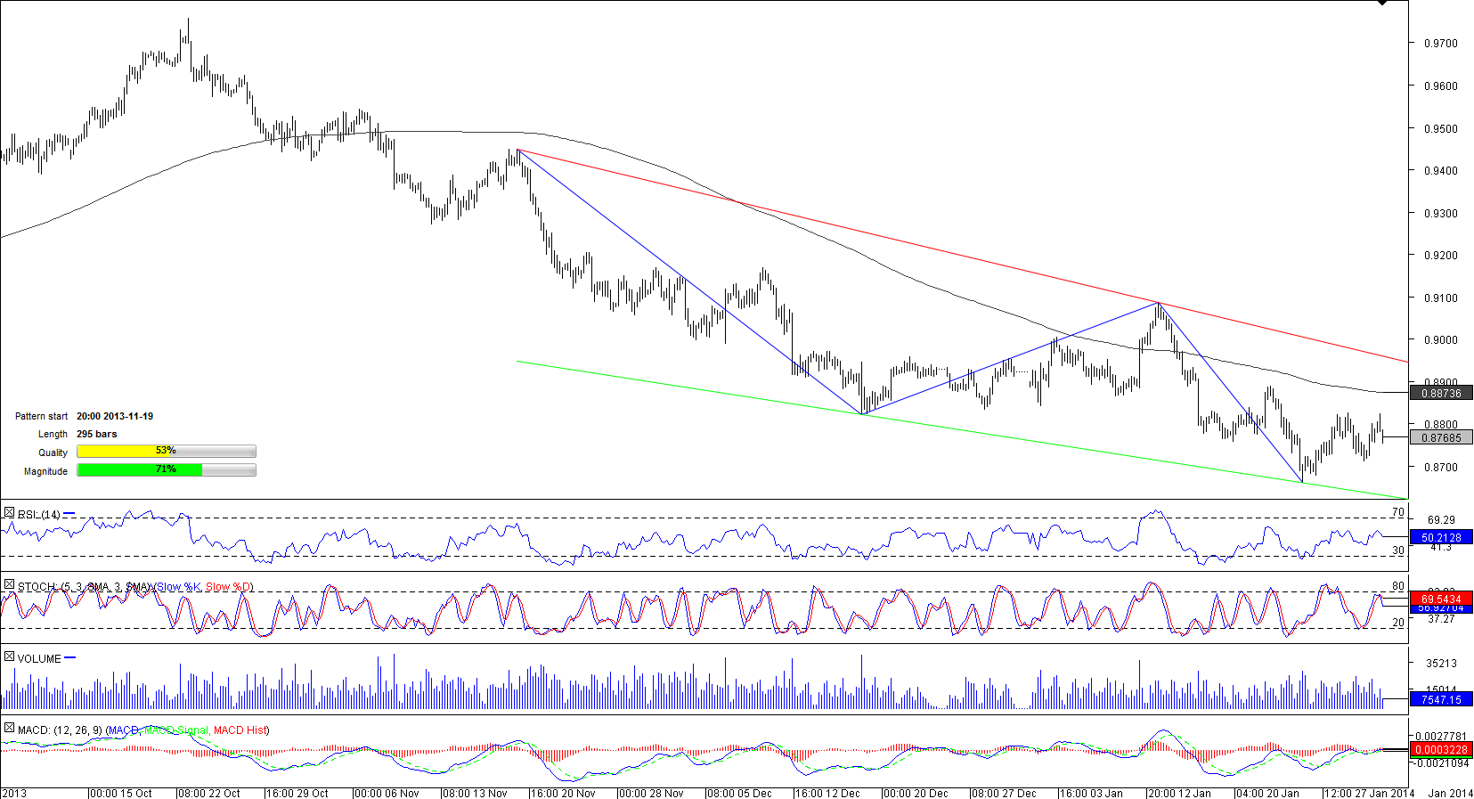 Having hit a five-month high, the Australian Dollar started to lose ground versus its U.S. counterpart and in mid-November the pair entered a channel down pattern. Being a subject to a heavy selling pressure, the currency couple plunged to a five-year low of 0.8664 several days ago and despite recovering and even to surpassing its 50-bar SMA, the pair is not likely to prolong this winning streak. According to the SWFX data, over 66% of market participants bet on depreciation of the pair. Technical indicators also solidify this view, sending "sell" signals for medium and long terms.