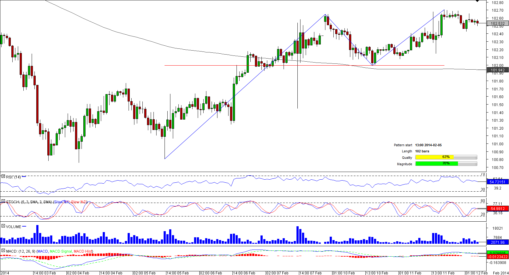 Earlier we have examined a channel down pattern formed by USD/JPY but today we will focus on another pattern, double top, shaped by the same currency couple. The pattern originated at a nine-week low of 100.75 and took the pair to a one-week high of 102.69, the level which acts as a peak of the pattern.
