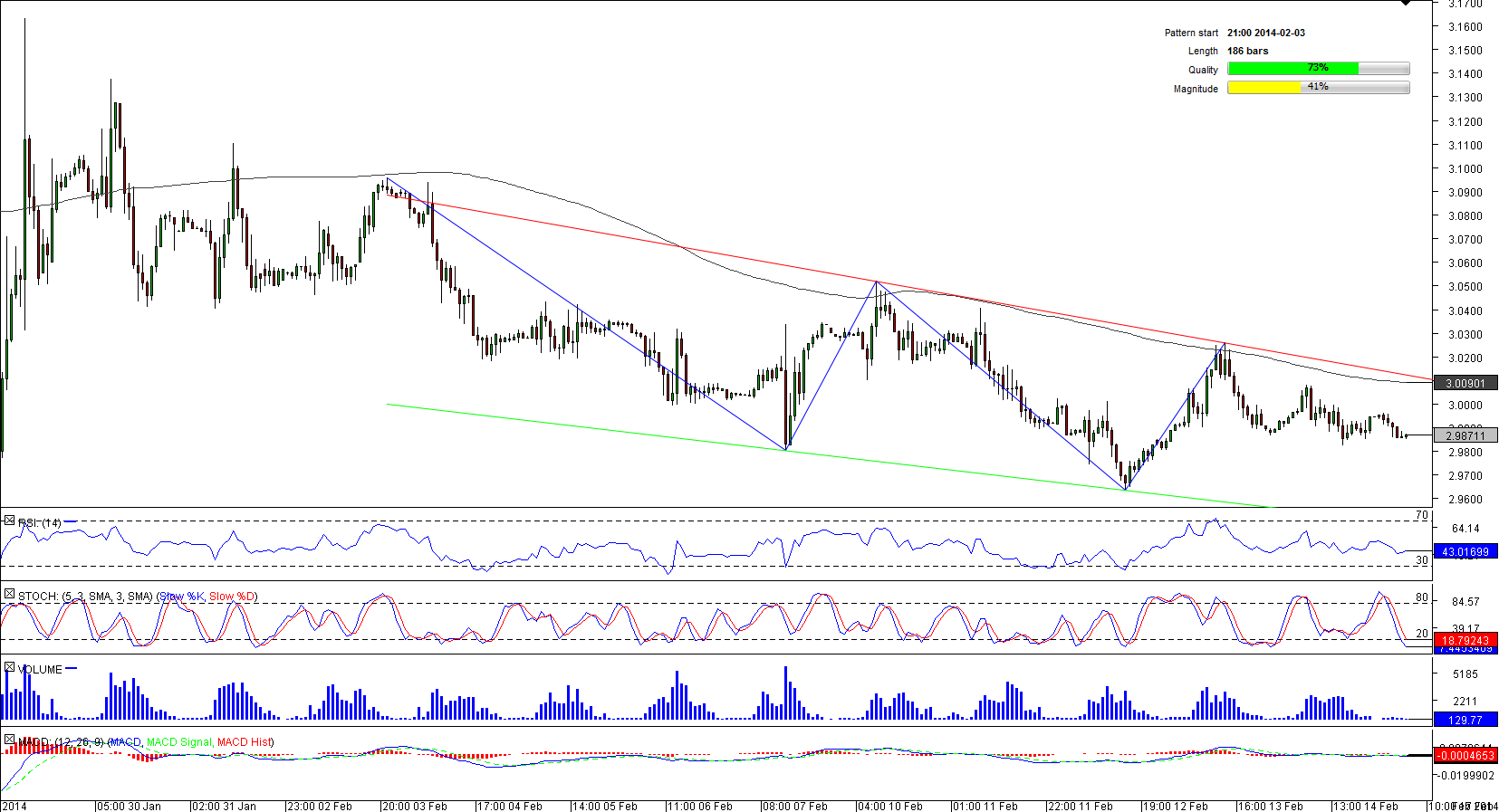 After the central bank of Turkey raised interest rates to curb an accelerating depreciation of the national currency, EUR/JPY fell to a two-week low of 2.9550 then gained slightly to the level of 3.0993 where the distinct bearish trend originated. While retreating, the pair formed a falling wedge pattern that now is 186-bar long.