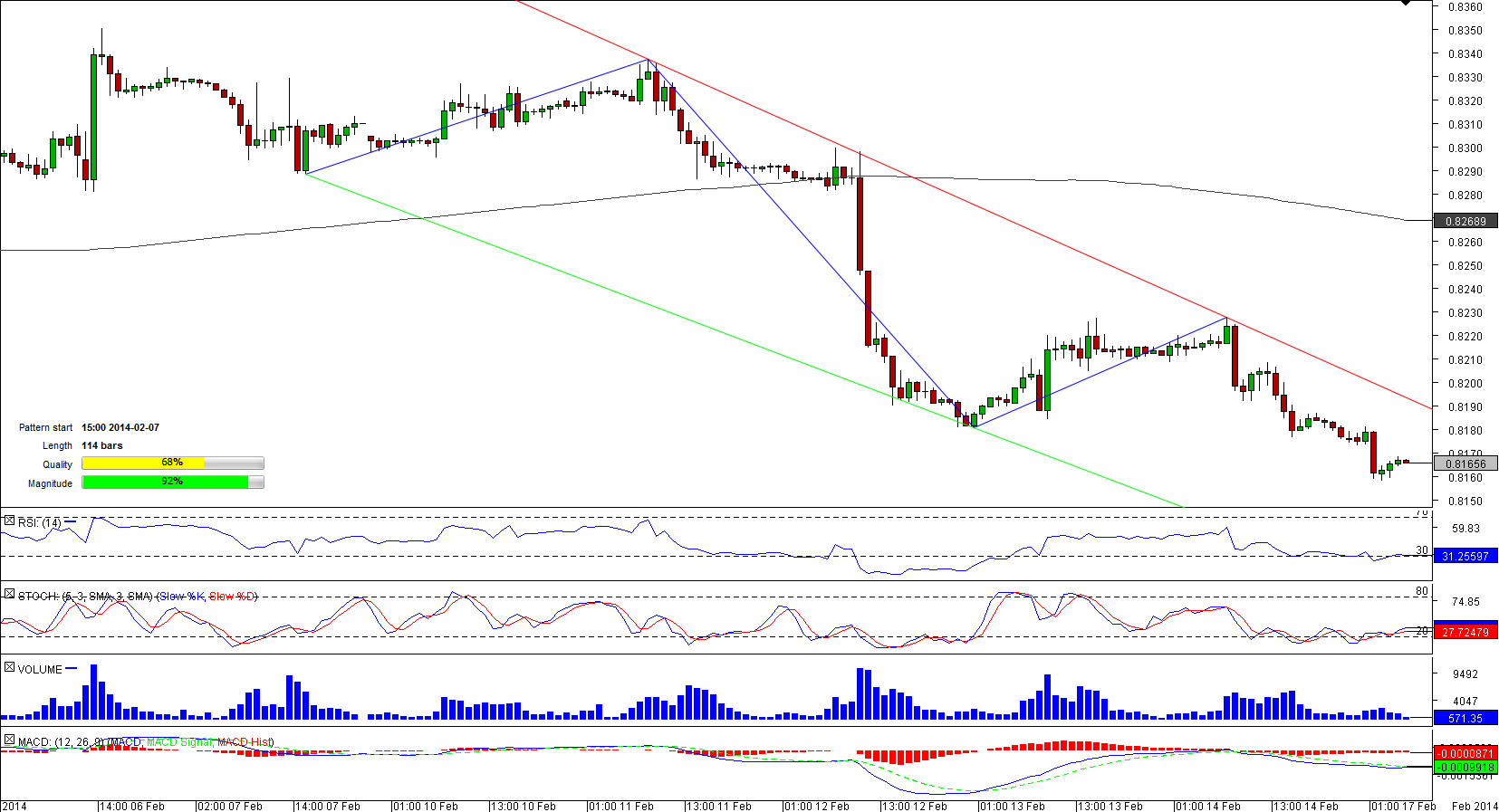 Having dived to a one-year low of 0.8158 four hours earlier, the pair managed to recover slightly and bounce off the level of 0.8159 (daily S1) and now is sitting less than 10 pips above this line. In the hours to come, the Euro is likely to prolong its losing streak versus the British Pound as over 65% of all orders are placed to sell the pair.