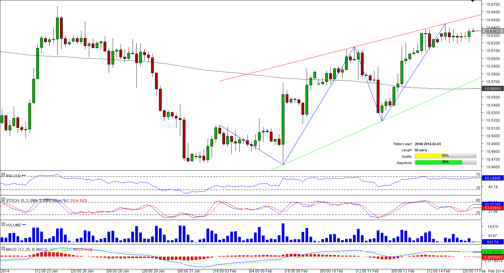 At the moment, EUR/HKD is vacillating not far away from the upper boundary of the 58-bar long rising wedge and may try to reach this level. The bullish view is further solidified by technical data; technical indicators are sending ‘buy' signals for short and long terms.