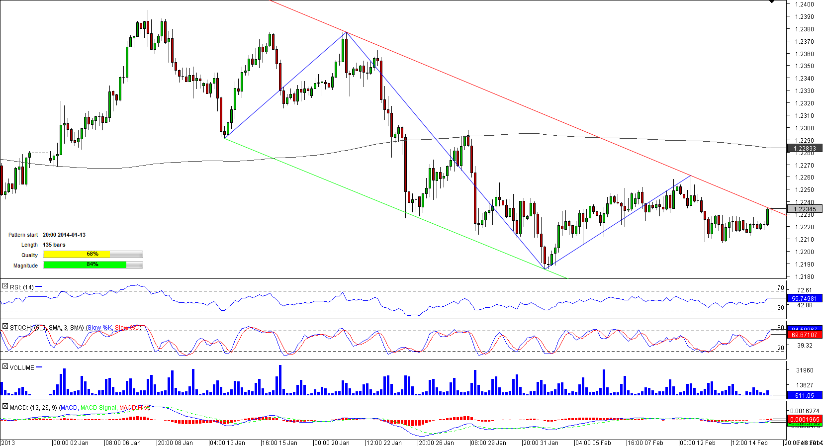 A rise to a four-month high of 1.2396 in early January initiated a retreat of the single currency against the Swiss Franc that resulted in formation of the bearish tunnel. Being trapped by channel trend-lines that are rather steep, the pair plunged to a two-month low of 1.2185 in the beginning of February. After that, EUR/CHF changed direction and managed not only to approach but also to break through the upper limit of the pattern, suggesting that the breakout may have occurred. However, it may be too early to certify that the breakout is real, especially considering that almost two thirds of market players are bearish on the pair.