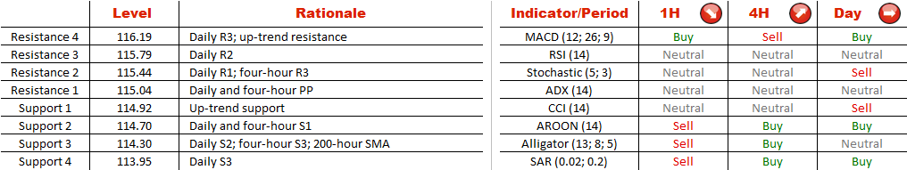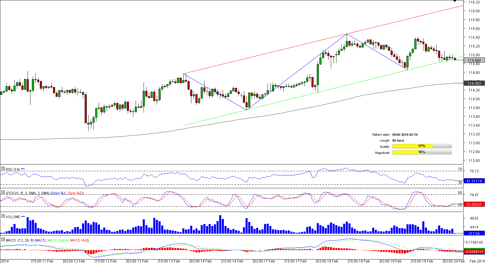 However, being that the upper rising trend-line has been confirmed only on few occasions, unlike the lower one, which has already proved to be reliable, there is still a possibility that CHF/JPY may be trading either in an emerging ascending wedge or triangle. Accordingly, for now we would rather focus on the support at 114.92, which is supposed to withstand the selling pressure for any of the cases to be true. If it does not trigger buying, there are strong demand areas at 114.70 and 114.30.