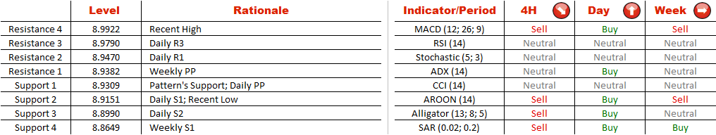 A 75-bar long channel up pattern was formed by EUR/SEK on February 7, when the pair failed to move above 8.8694 and pulled back to a weekly S2 at 8.7476. At the moment of writing the pair was trading at 8.9350, practically at the same level with pattern's support. The pair can be highly volatile soon as it is bounded not only by the lower boundary, but also by a weekly pivot. Vast majority (58.77%) of traders are selling the single currency among other currencies, while more than 65% of them a holding short positions on the pair, meaning the expect a move to a recent low and daily S1 at 8.9151. In case it is breached, 8.8990 will be put on the map.
