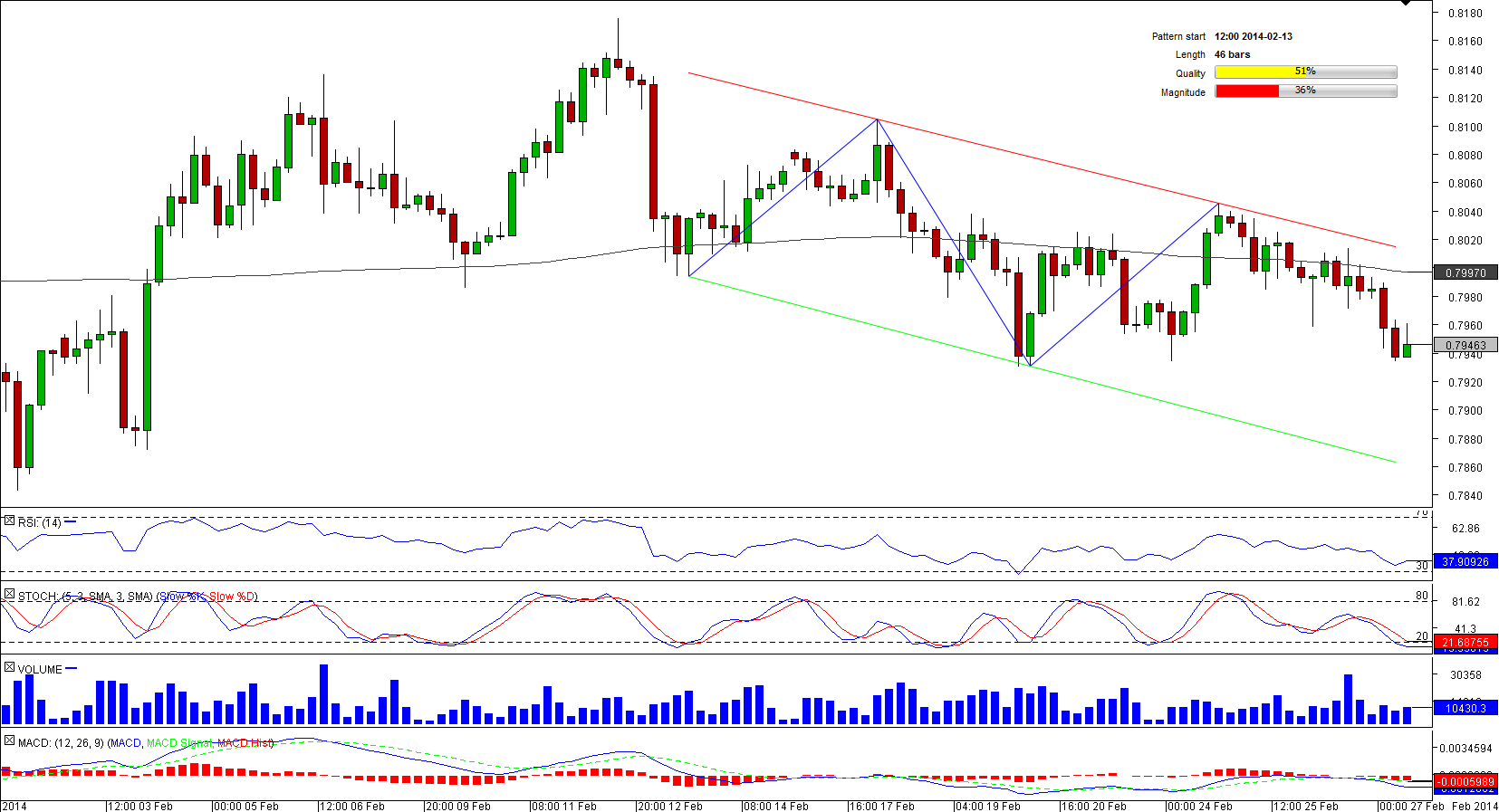 On Feb 12 AUD/CHF stopped advancement short of hitting 0.82 and began to pare the gains it made during the first half of February. AUD/CHF has just bounced off the upper boundary of the corridor (currently reinforced by the weekly pivot point and the long-term moving average) and has already violated the 200-period SMA.