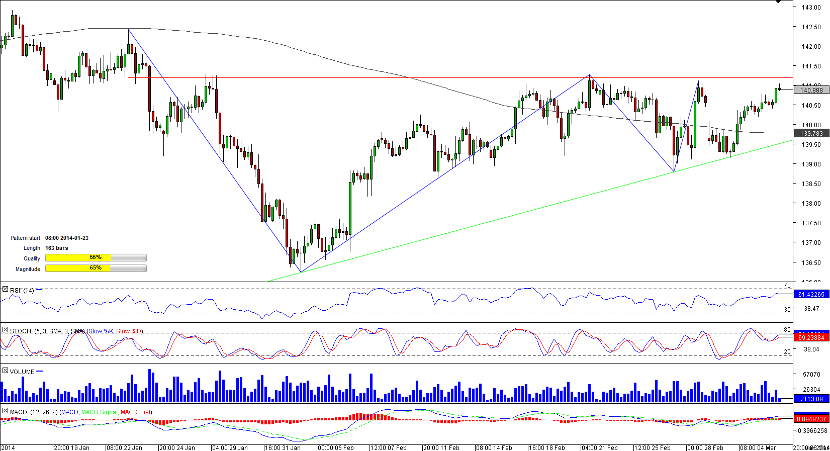 At the moment, EUR/JPY is bounded by trend-lines of a 163-bar long ascending triangle and is likely to remain steady in the hours to come. The SWFX data signals that the proportions of long and short positions are almost equal, whereas technical indicators send clearer signals, suggesting that the pair may enjoy rally in the following hours.