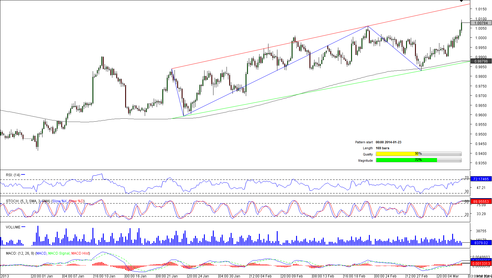 A 183-bar long channel down was formed on January 20, when the pair refused moving above 0.8341. At the moment of writing the pair was trading at 0.7946, just couple of pips above the daily S3. While technical indicators are mixed, we can suggest two possible scenarios. Both currencies are sold in vast majority of all cases, while market sentiment
