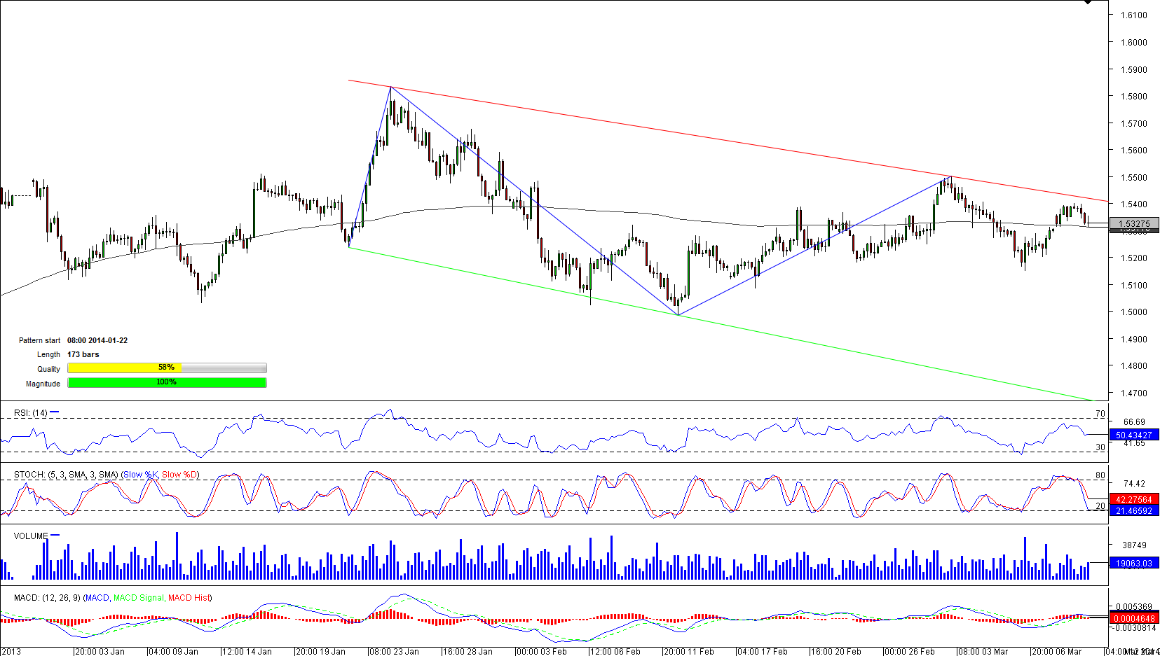EUR/AUD is trying to break pattern's resistance, opening the road to a recent high at 1.5827. Nevertheless, after an attempt to break 1.5500 level, bulls refused going any higher and the moment of writing the pair was trading at 1.535, bounded by a 200-period SMA and a weekly PP. Dukascopy traders, however, are making their bets the pair will try to reach strong psychological level and a weekly R1 at 1.5500. More than 57% of traders are holding long positions, while 60% of pending orders in a 100-pip range are placed to buy the single currency versus the Aussie. In case 1.5500 is breached, long traders will aim another weekly resistance at 1.5675.